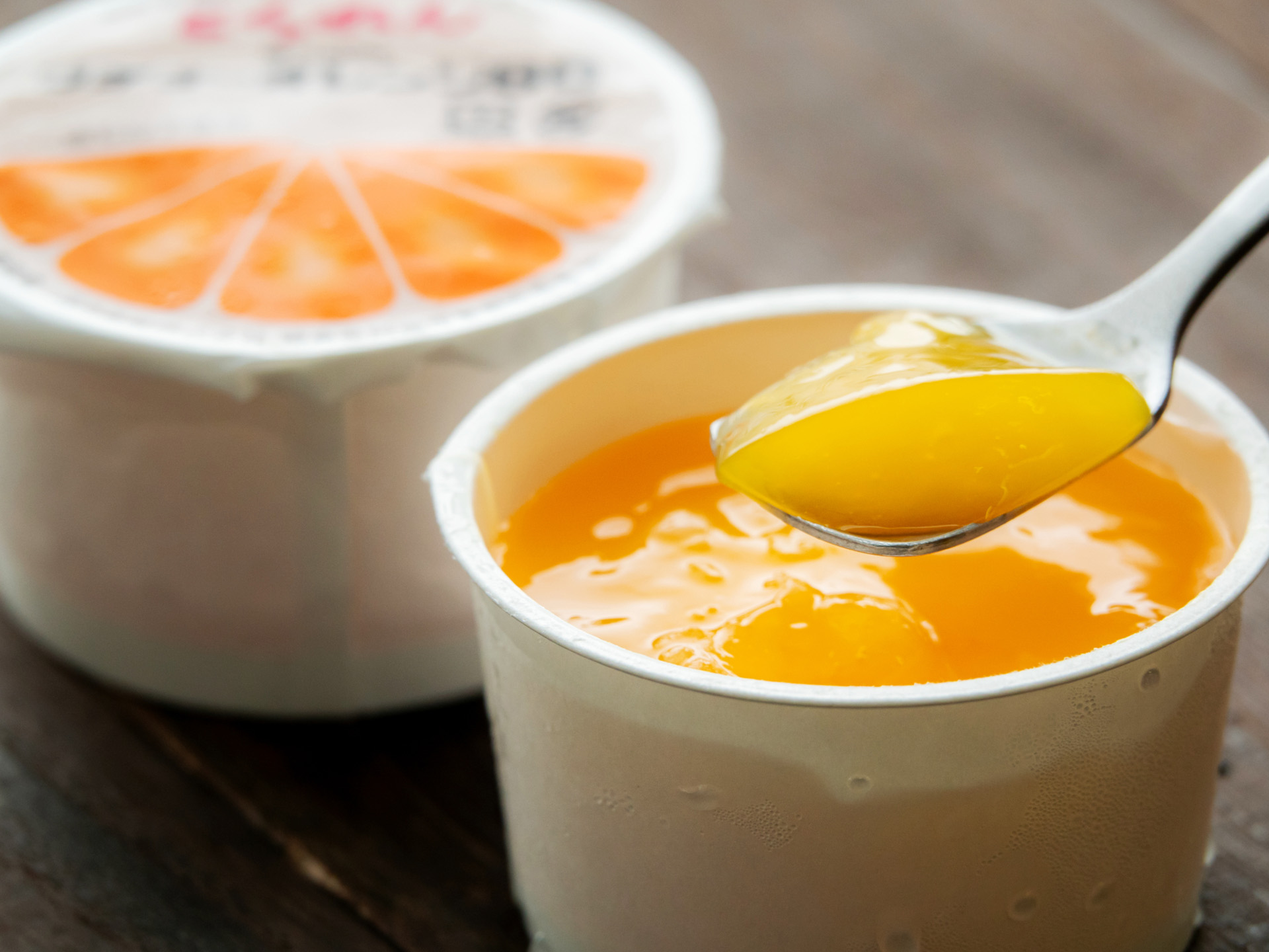 旬の果実の甘さをそのまま閉じ込めた冷凍ゼリーです。まろやかな味わいとつるんとした喉越しが楽しめ、半解凍で味わう“半シャリ”の食感も人気。個包装で扱いやすく、学校給食や施設食にもおすすめの一品です。