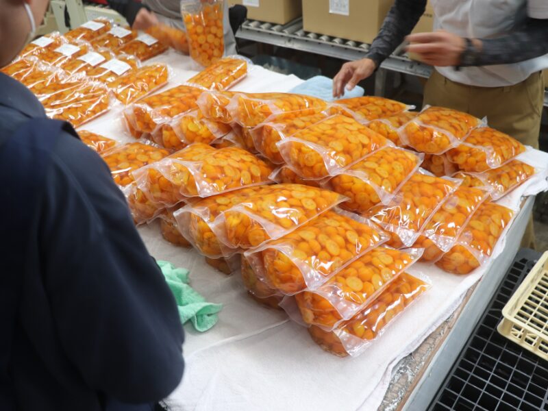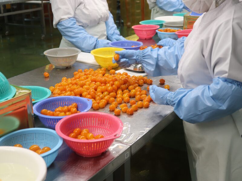 ・食品材料の梅や金柑などの缶詰製造作業